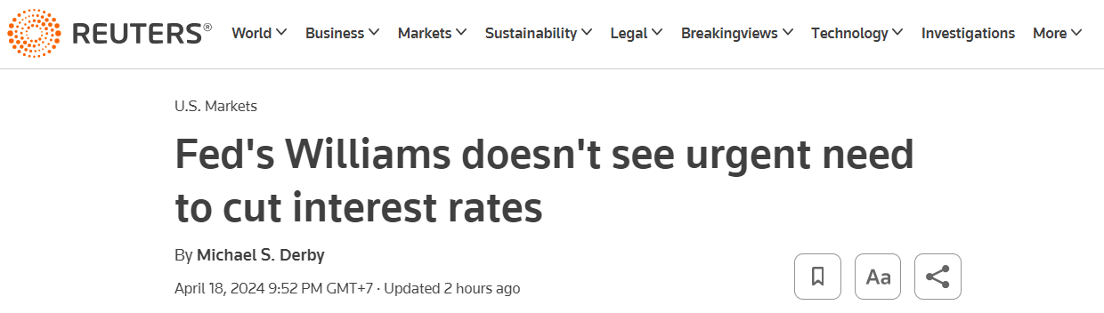 Update on Fed officials' remarks: Williams, Bostic