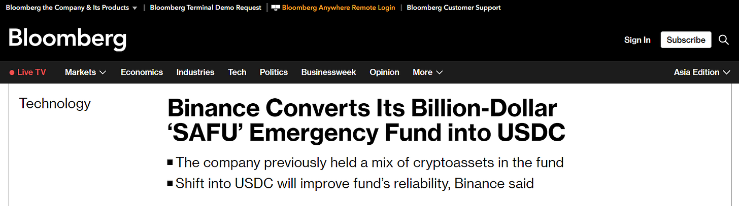 Binance converts User SAFU (Secure Asset Fund for Users) into USDC stablecoin and now holds 3% of this stablecoin's circulating supply.