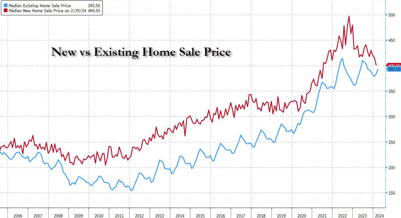 With current decline in new home prices, existing home prices about to surpass new home prices