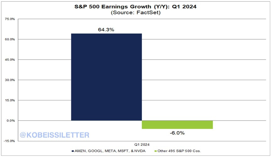 However, excluding the group of 5 Big Tech stocks expected to increase -64.3% Q1 (Nvidia, Amazon, Meta, Google, Microsoft), S&P 500 is expected to decline -6%.