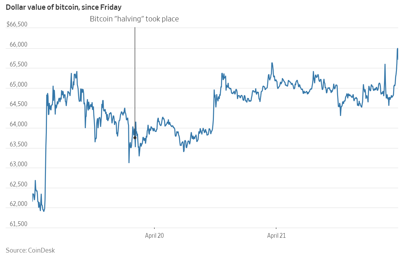 Bitcoin halving completed smoothly last weekend, fluctuating at ~66,000 USD.