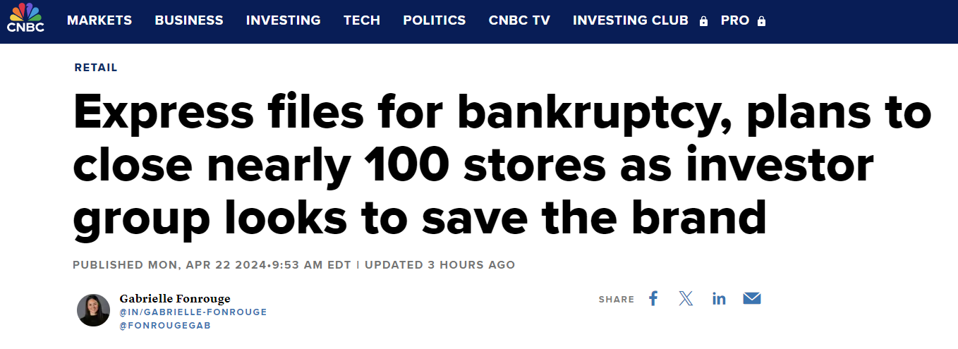 However recently, retail chain Express has filed for bankruptcy, planning to close nearly 100 stores due to pressure from consumer demand, causing sales to drop sharply in recent years.