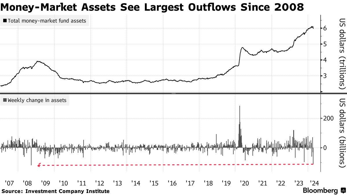 In addition, money market funds also recorded the largest outflows since 2008 (~112 billion USD in the week to 04/17).