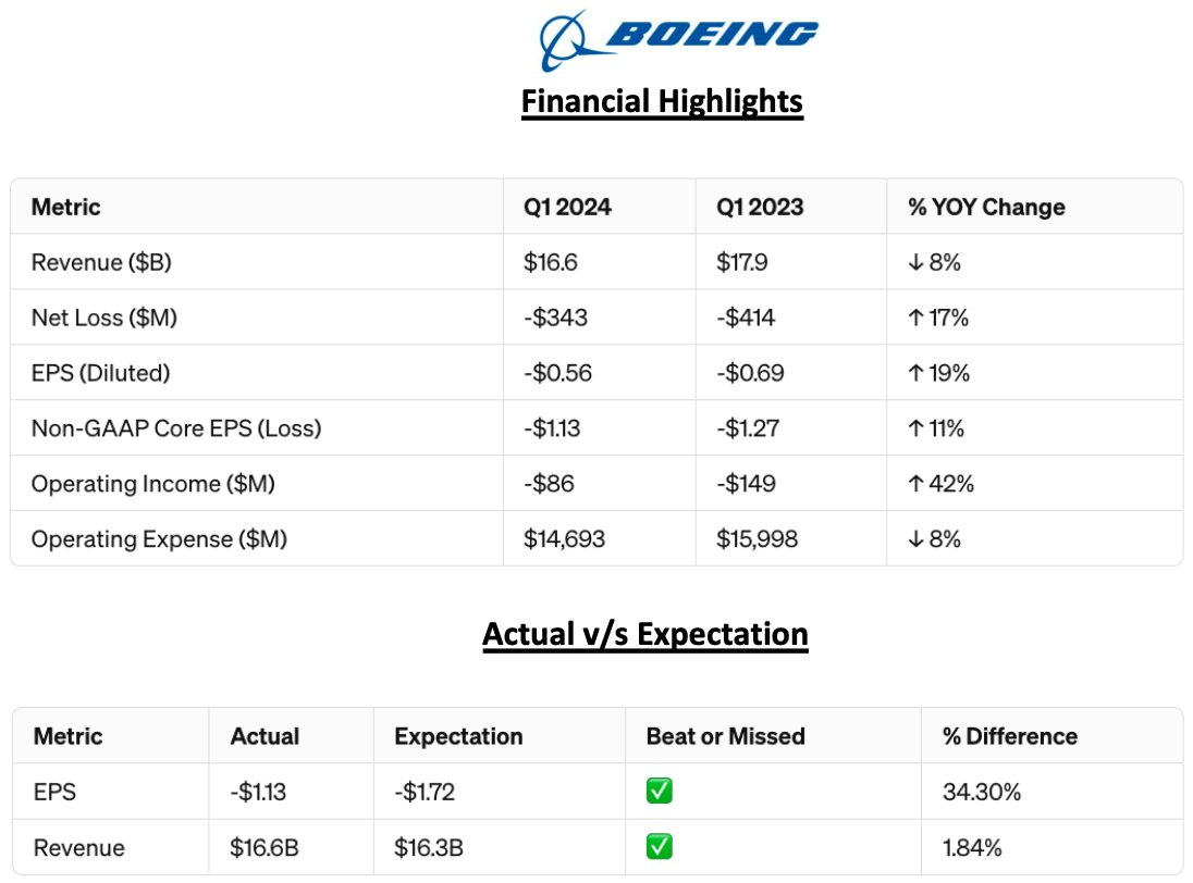 Revenue -8% Y/Y to 16.6 billion USD due to only delivering 737 aircraft