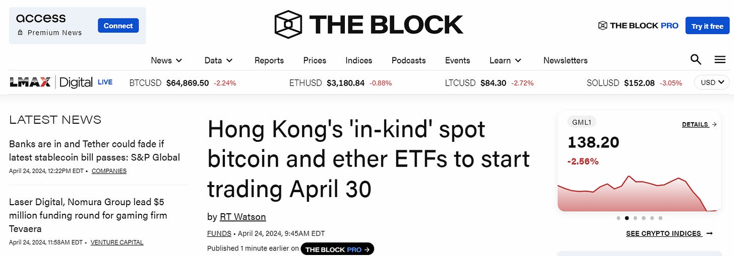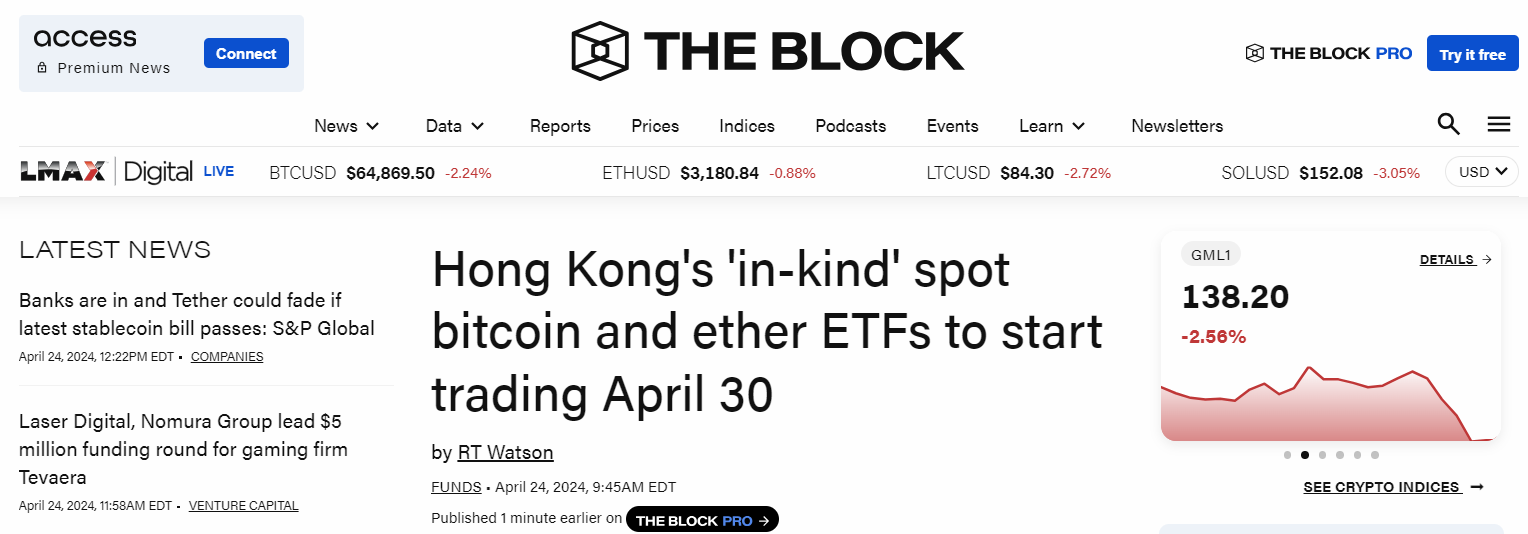 Hong Kong is the first Asian stock exchange to approve Bitcoin and Ether spot ETF for listing from 04/30