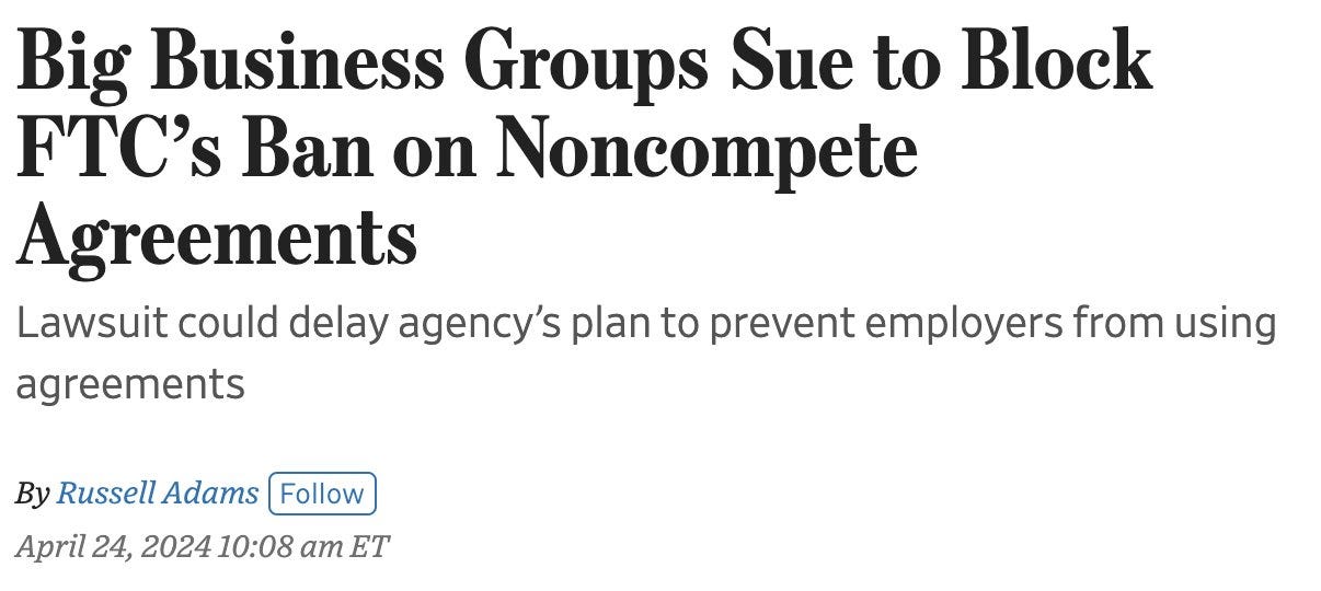 US Chamber of Commerce and business groups file lawsuit to block FTC ruling making non-compete agreements illegal.