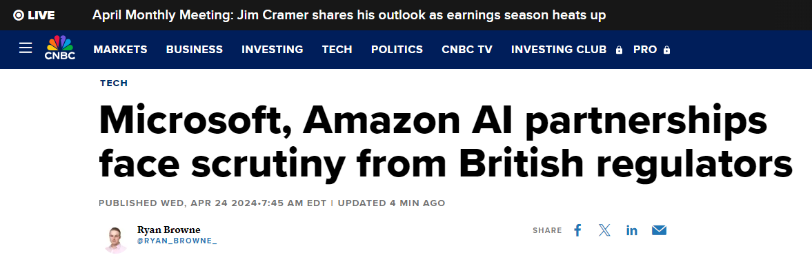 UK regulator investigates partnerships between Microsoft, Amazon and smaller AI companies