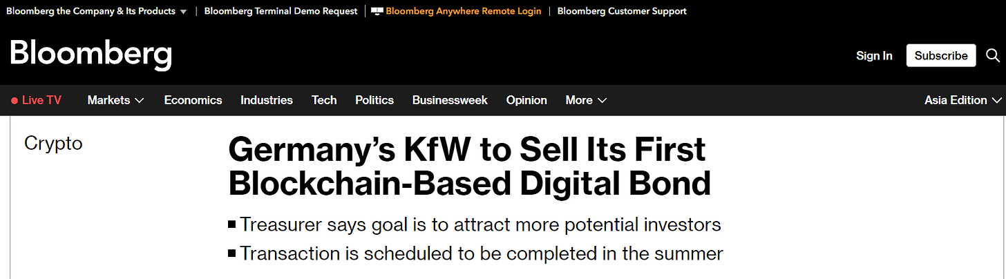 German bank Kreditanstalt fuer Wiederaufbau prepares to issue first blockchain-based digital bond