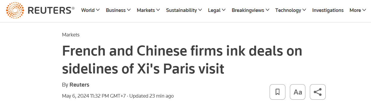 French and Chinese companies sign deals on sidelines of Xi Jinping's Paris visit