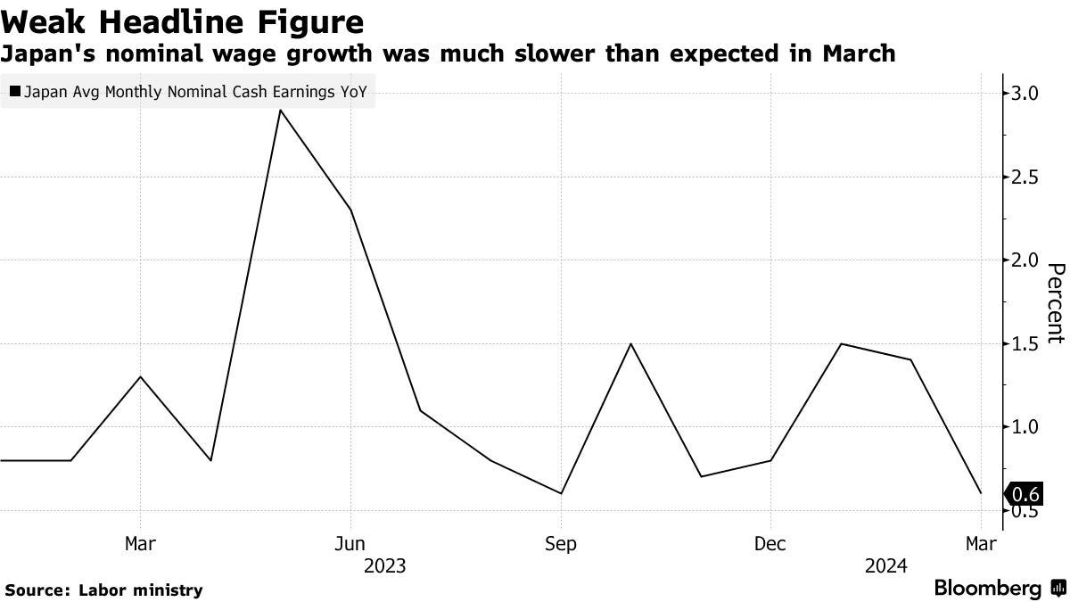 Real wages in Japan (after inflation adjustment) down 2.5% YoY in March: