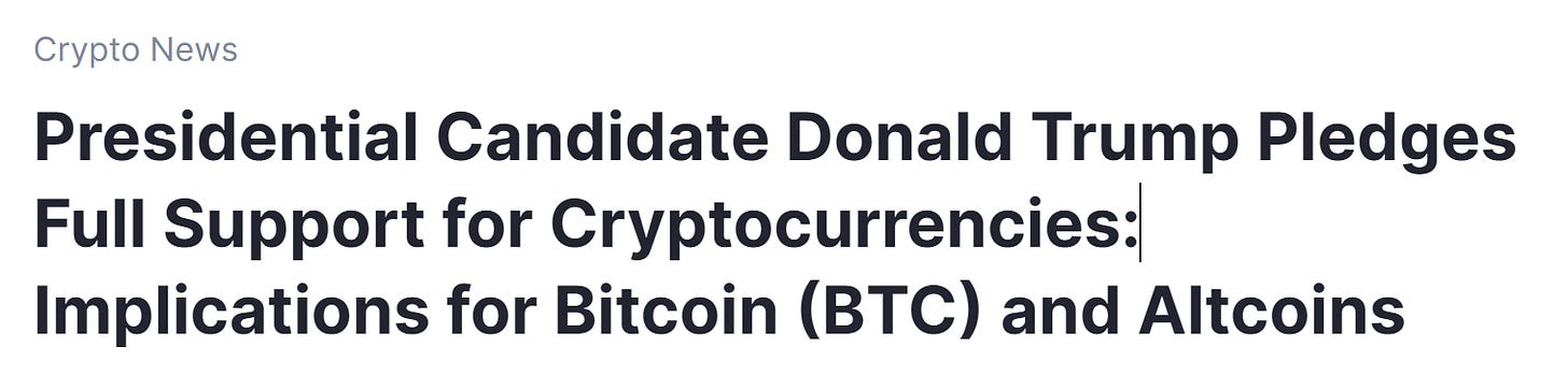 Donald Trump accepts crypto as an asset for presidential campaign fund donations.