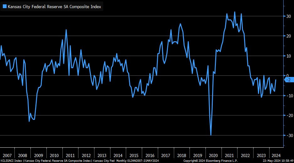 Kansas City Fed Manufacturing Index recovers to level -2 (estimate -7, previous -8).