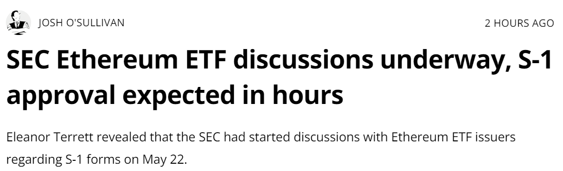 Decision on Ethereum Spot ETF could come today or tomorrow.