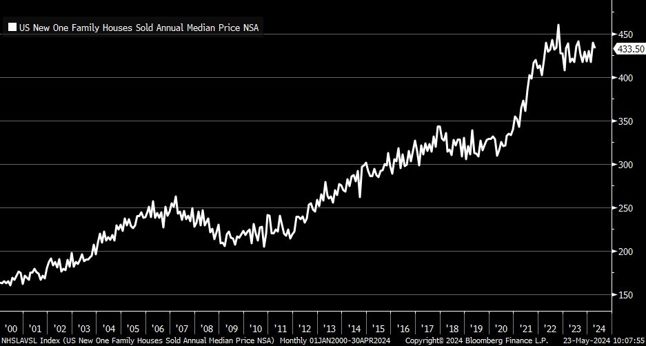 Average new home price up +3.9% YoY (~ 433,500 USD), near record high.