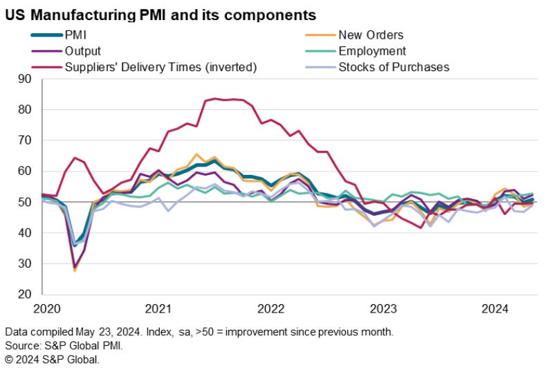 S&P Global's preliminary May PMI estimates show manufacturing activity continues to expand: