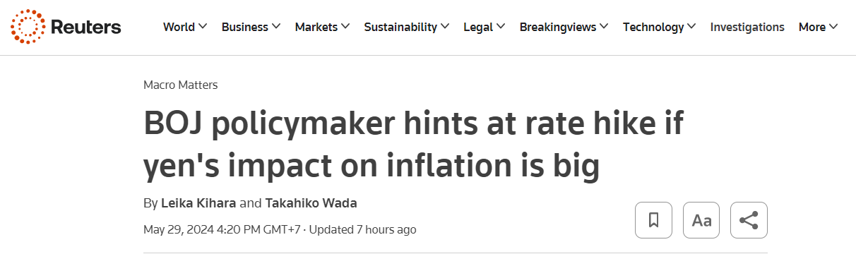 BOJ may raise interest rates if JPY continues to depreciate excessively and significantly impacts inflation expectations