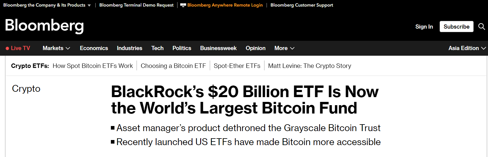 BlackRock's IBIT becomes the world's largest spot Bitcoin ETF
