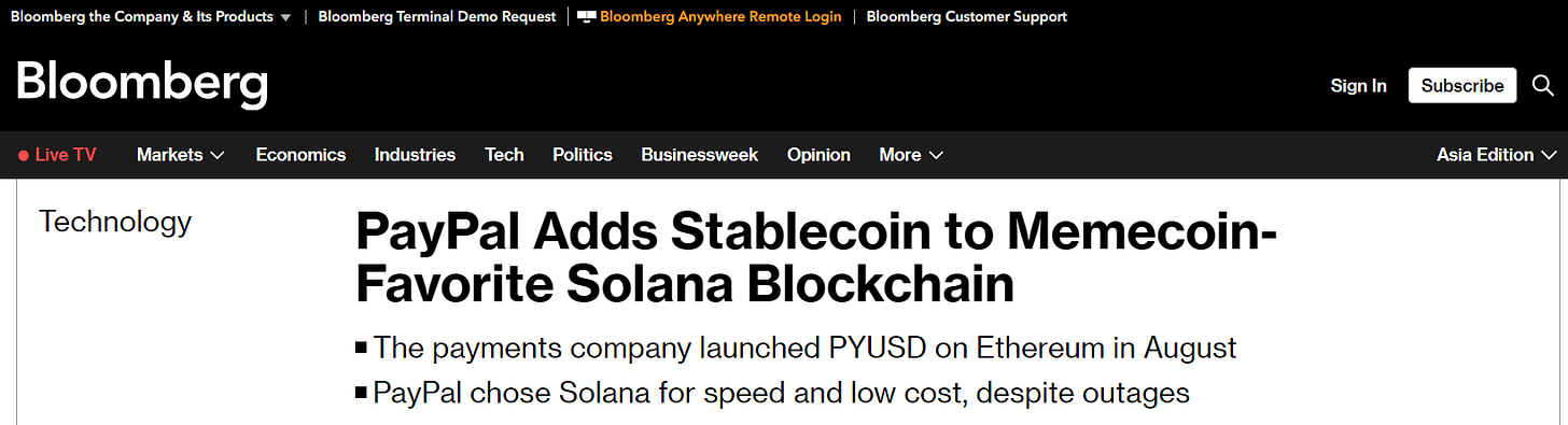 PayPal expands its Stablecoin PYUSD to Solana Blockchain