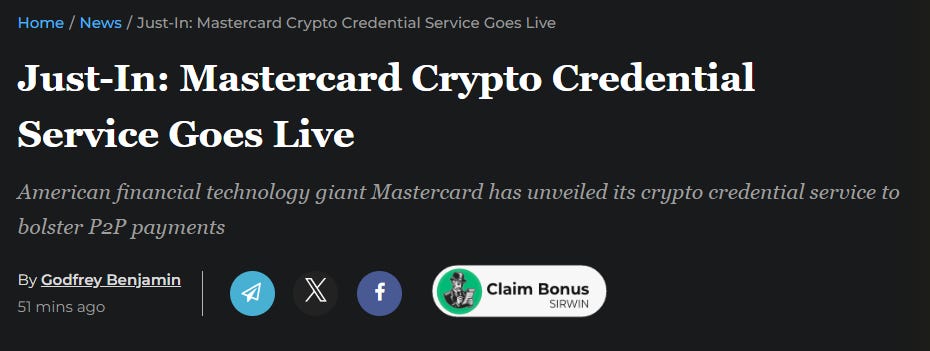 Mastercard reveals first pilot P2P transaction of Mastercard Crypto Credential, providing users with an alternative solution to send and receive digital assets.