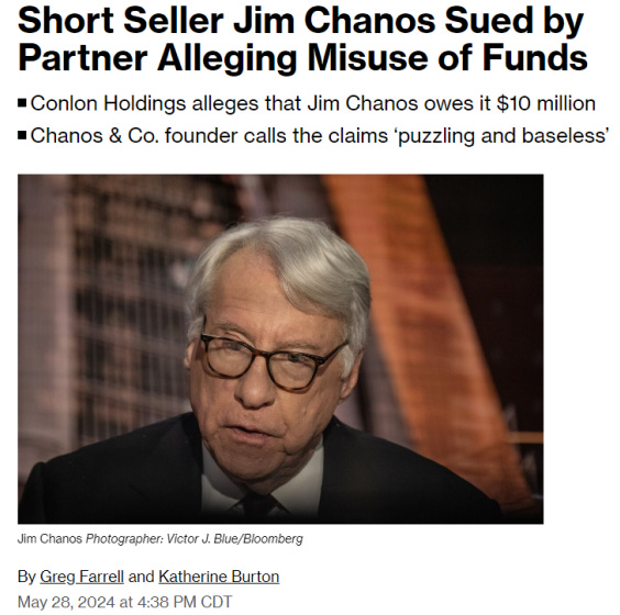 Short seller Jim Chanos, who had to close his hedge fund last year due to heavy losses, is now charged with embezzlement
