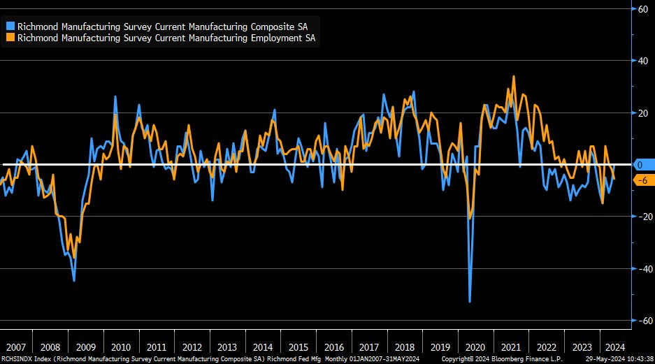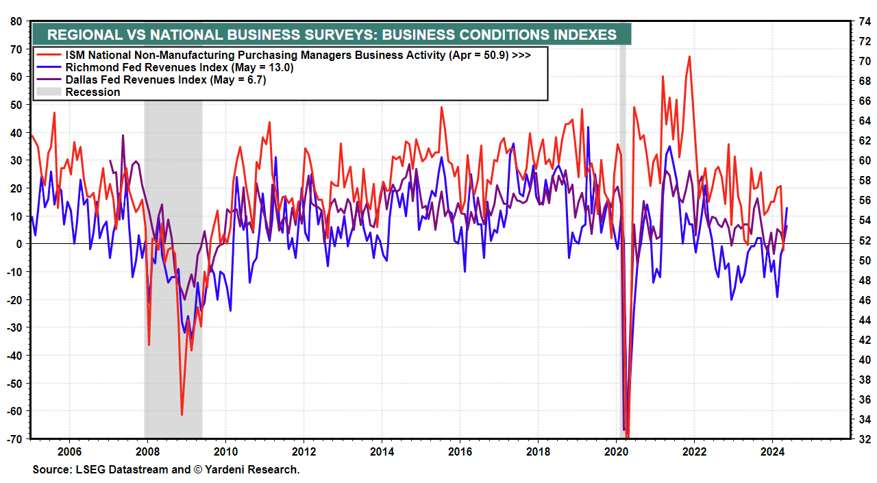 Service sector surveys from both Fed Dallas and Richmond show improved May revenue index.