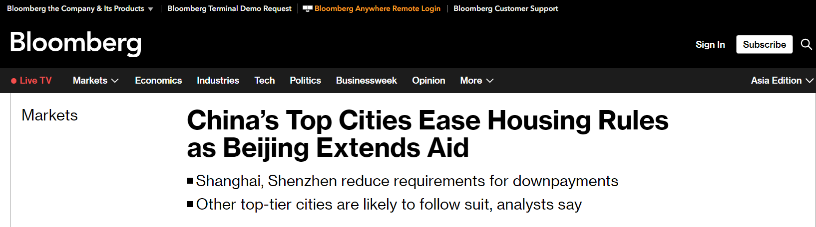 China's largest cities have eased down payment and mortgage loan requirements, after the government rolls out support package for the real estate sector