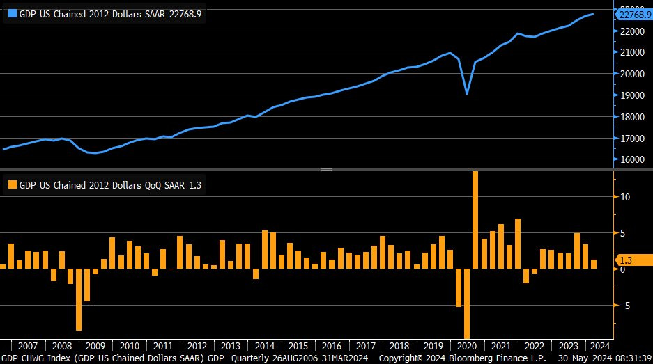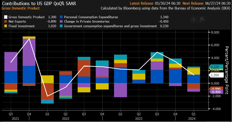 Q1/2024 GDP revised down from +1.6% Q/Q to +1.3% Q/Q - in line with economists' expectations