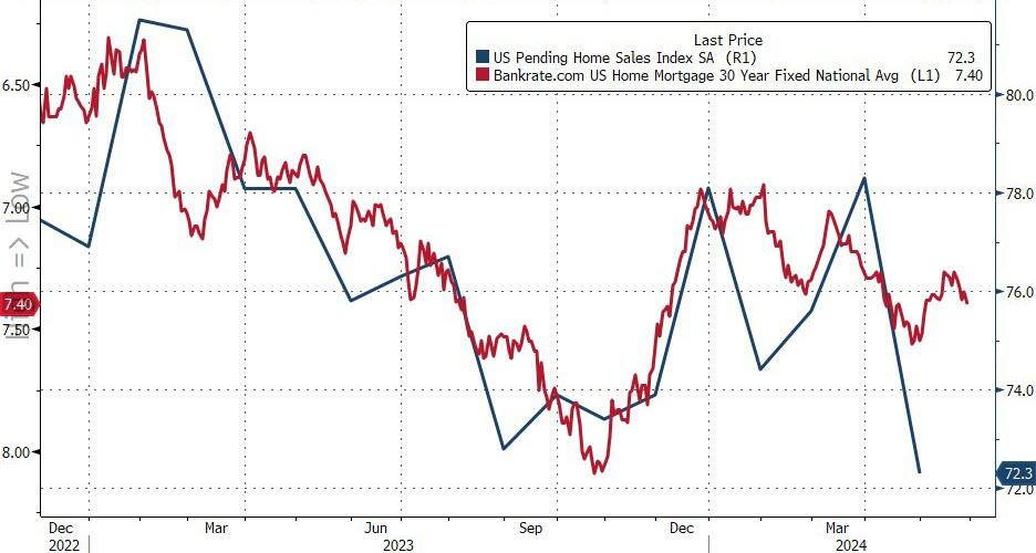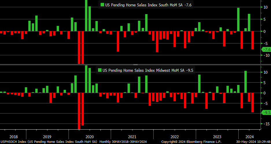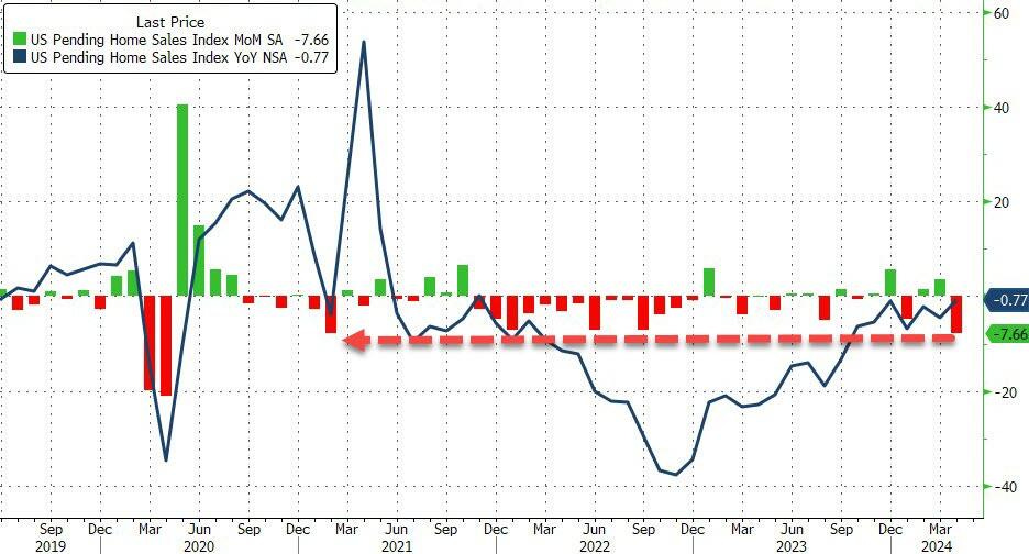 Pending home sales down -7.7% M/M - largest drop since February 2021, equivalent to -0.7% Y/Y