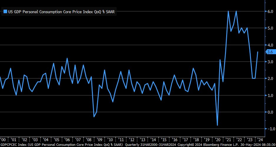 Core price index (GDP Core Price) in Q1/2024 also revised down from +3.7% Q/Q to +3.6% Q/Q