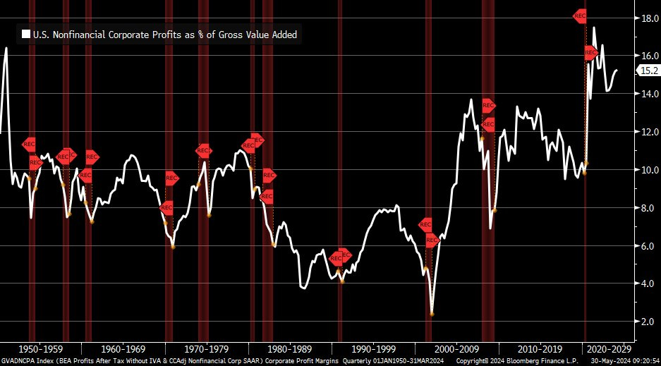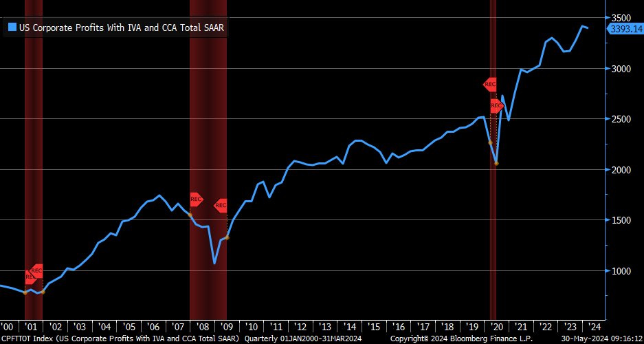 3. Corporate profits dip slightly from peak but profit margins rebound: