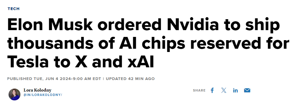Elon Musk has asked Nvidia to prioritize shipping processors to X and xAI before Tesla.