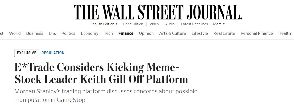 E*Trade considers banning Meme-Stock king Keith Gill from trading platform