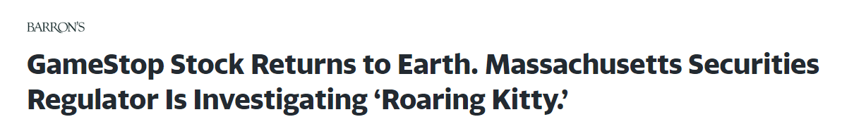 Massachusetts securities regulator investigating "Roaring Kitty" trading activities after recent GameStop trades