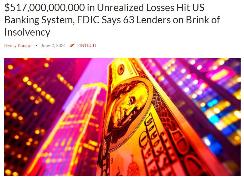 FDIC warns that 63 banks are on the verge of illiquidity due to unrealized losses up to 517 billion USD