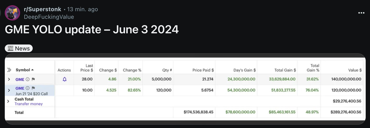 Today, Keith posts image on Reddit showing Gamestop position worth 100 million USD
