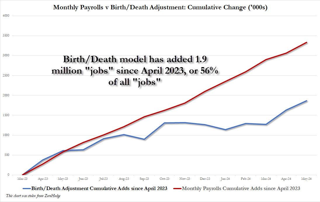 Birth-Death Model adjustment accounts for 56% of all jobs over the past year