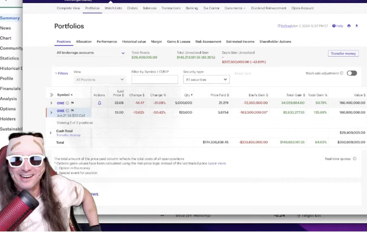 Roaring Kitty cheerfully shares $235 million loss today live on stream