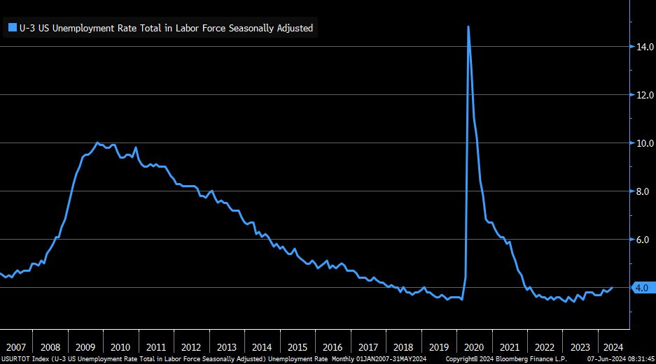 Unemployment rate first hits milestone 4% in over 2 years, higher than expected.