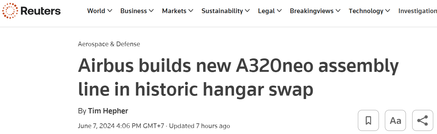 Airbus builds new A320neo assembly line in Toulouse to boost production efficiency.