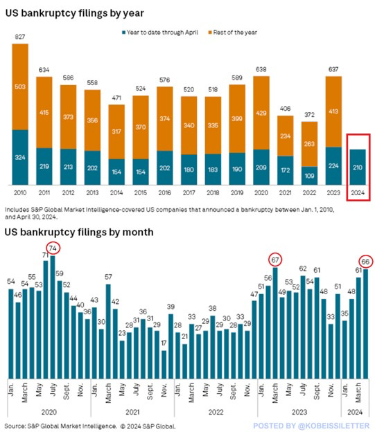 FYI: From the beginning of the year to now, 210 companies recorded bankruptcy, highest since 2012, mostly in Consumer and Healthcare sectors,