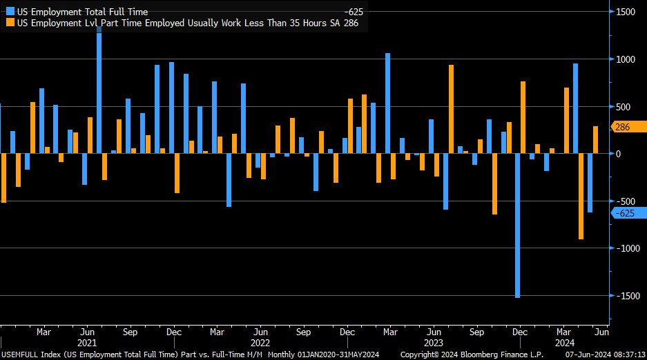 Full-time jobs drop sharply -625,000 - the largest drop since December last year.