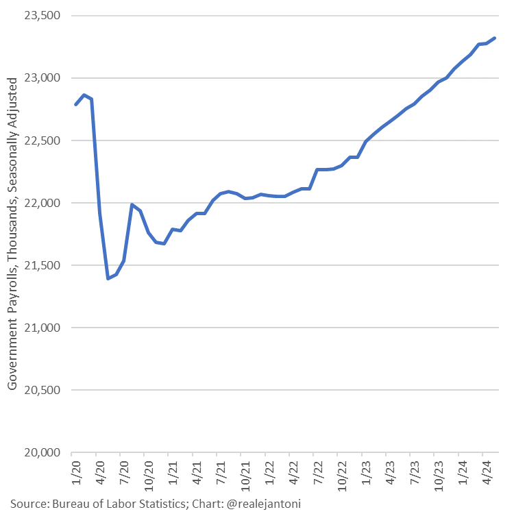 Government jobs rebounded (+43,000) after sharp drop last month (8,000).