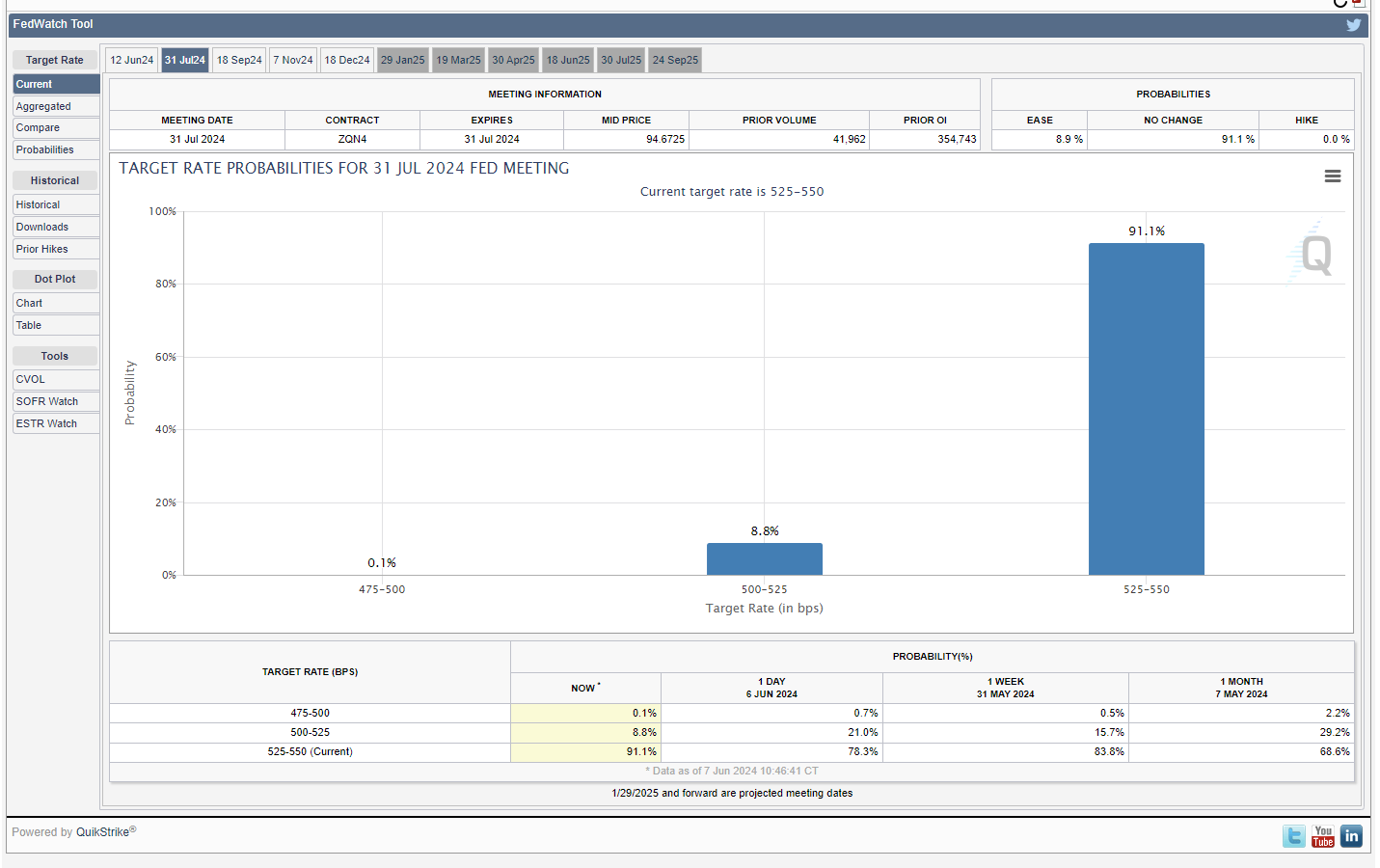 Probability of a cut in July drops to 8.8% (from 21% previously).