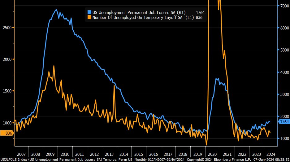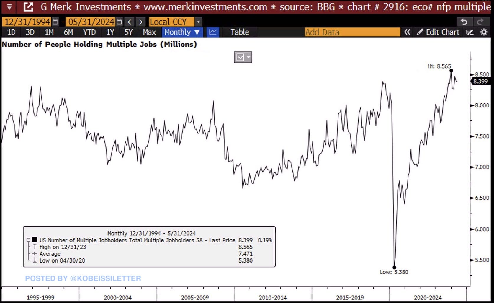 FYI: Number of workers holding multiple jobs (multi jobs) hits record 8.4 million in May (up more than 3 million from the Covid low) → Reason for surge in part-time jobs.
