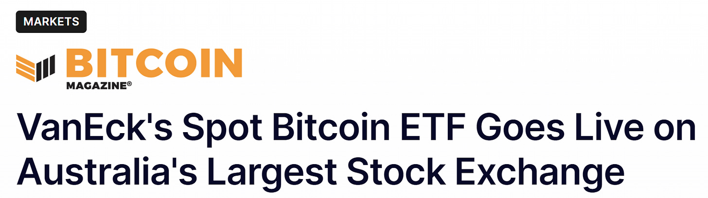 VanEck Spot Bitcoin ETF debuts on Australia's largest stock exchange.