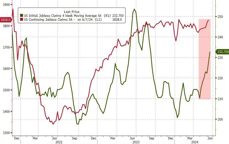 4-week moving average of initial jobless claims rose to 232,750 - highest since September.