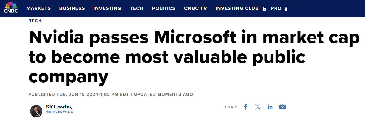 Nvidia just surpassed Microsoft to become the world's largest market cap company.