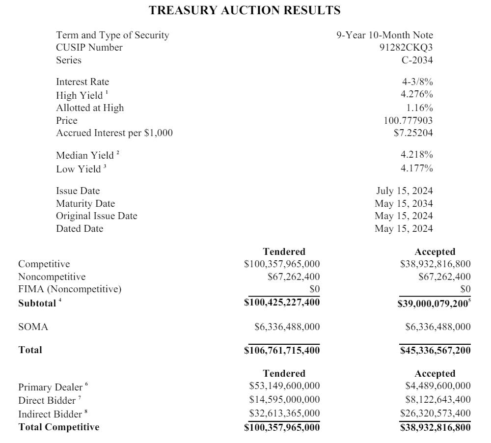 39 billion USD 10Y Treasury auction positive