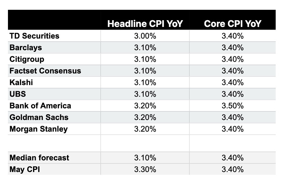 Average June CPI inflation expectations: 3.1% | Core CPI: 3.4%.