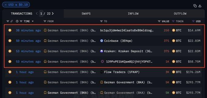 German government sold additional 2,000 BTC (~117 million USD), only remaining 13,360 BTC, equivalent to 26.8% of the initial seized Bitcoin from the Movie2k website.